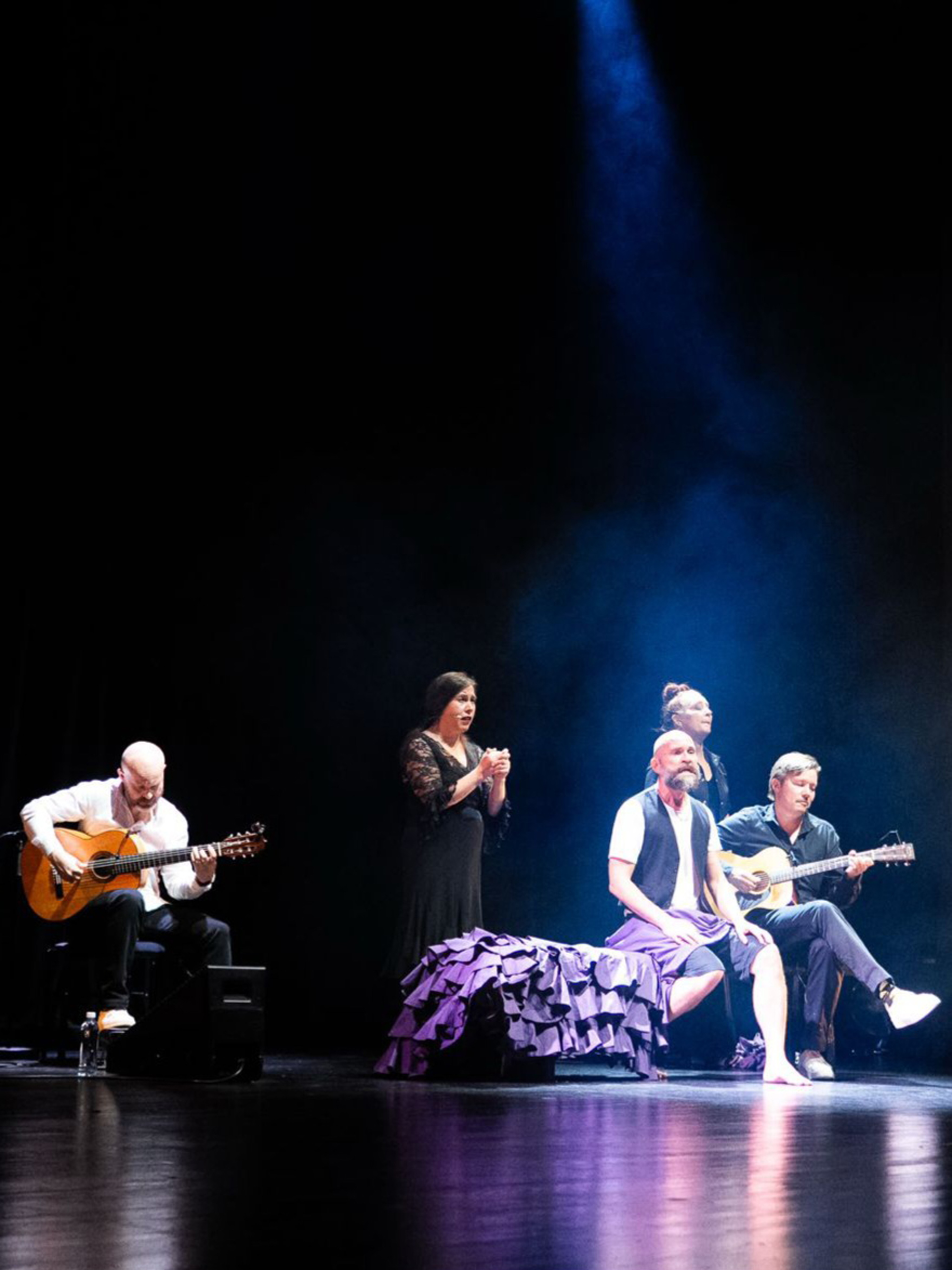 Esitys ei kuitenkaan olisi mitään ilman flamencoon kiinteästi kuuluvaa livemusiikkia. Monipuolinen kitaristi ja säveltäjä Janne Halonen sekä yksi maamme johtavista flamencokitaristeista Toni Jokiniitty alias Tony de Maria luovat lavalle upean musiikkimaailman, joka hehkuu tunnetta ja voimaa.---Se ei silti olisi täydellinen ilman hienoa flamencolaulaja ja -laulunopettajaTaija Tyrväistä alias Taija Robaltaa.